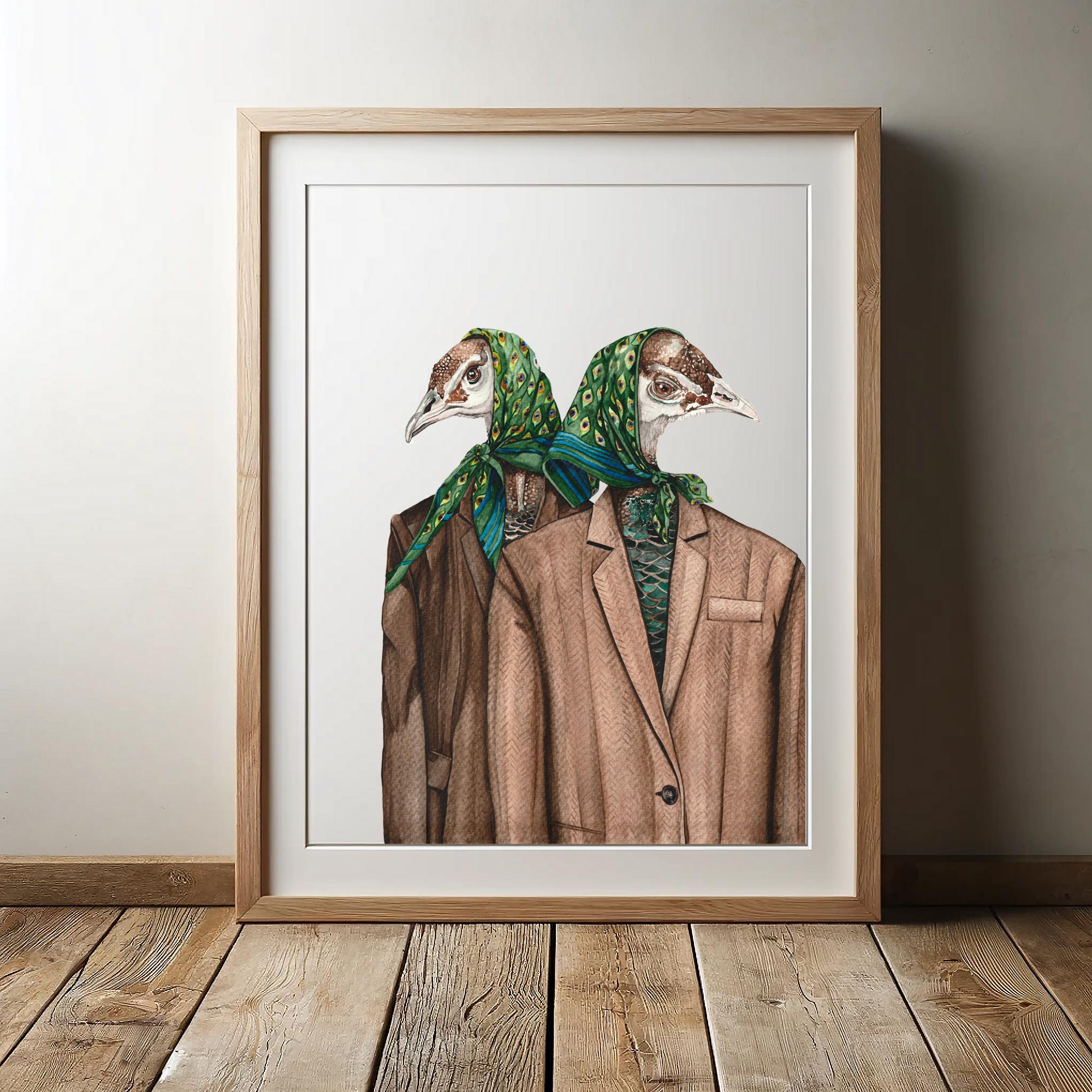 Peacock ladies bird art print